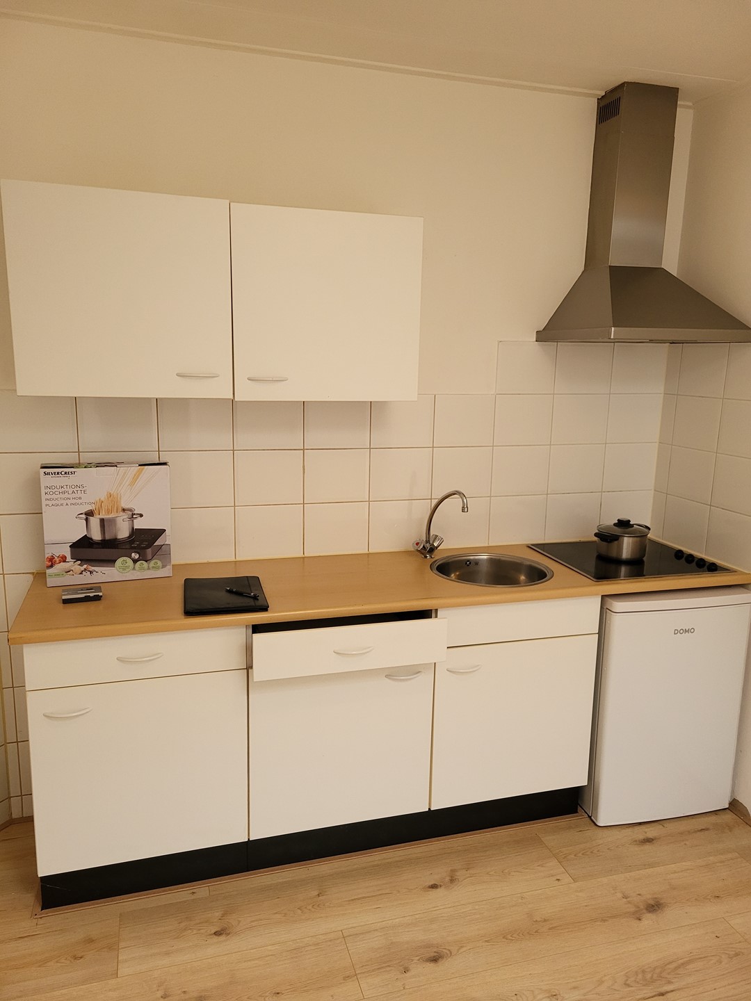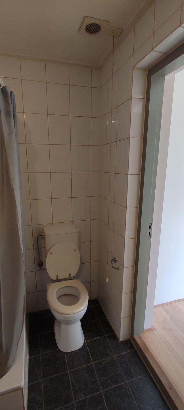 Simple, one-bedroom apartment with air conditioning, located on Rijksweg Centrum in Geleen. The apartment is located on the ground floor at the rear of a building with a total of 6 apartments. The apartment has laminate flooring. The basic kitchen is equipped with a 4-burner stove, refrigerator, and extractor hood. The bathroom has a bathtub, shower, sink, toilet, and washing machine connection.