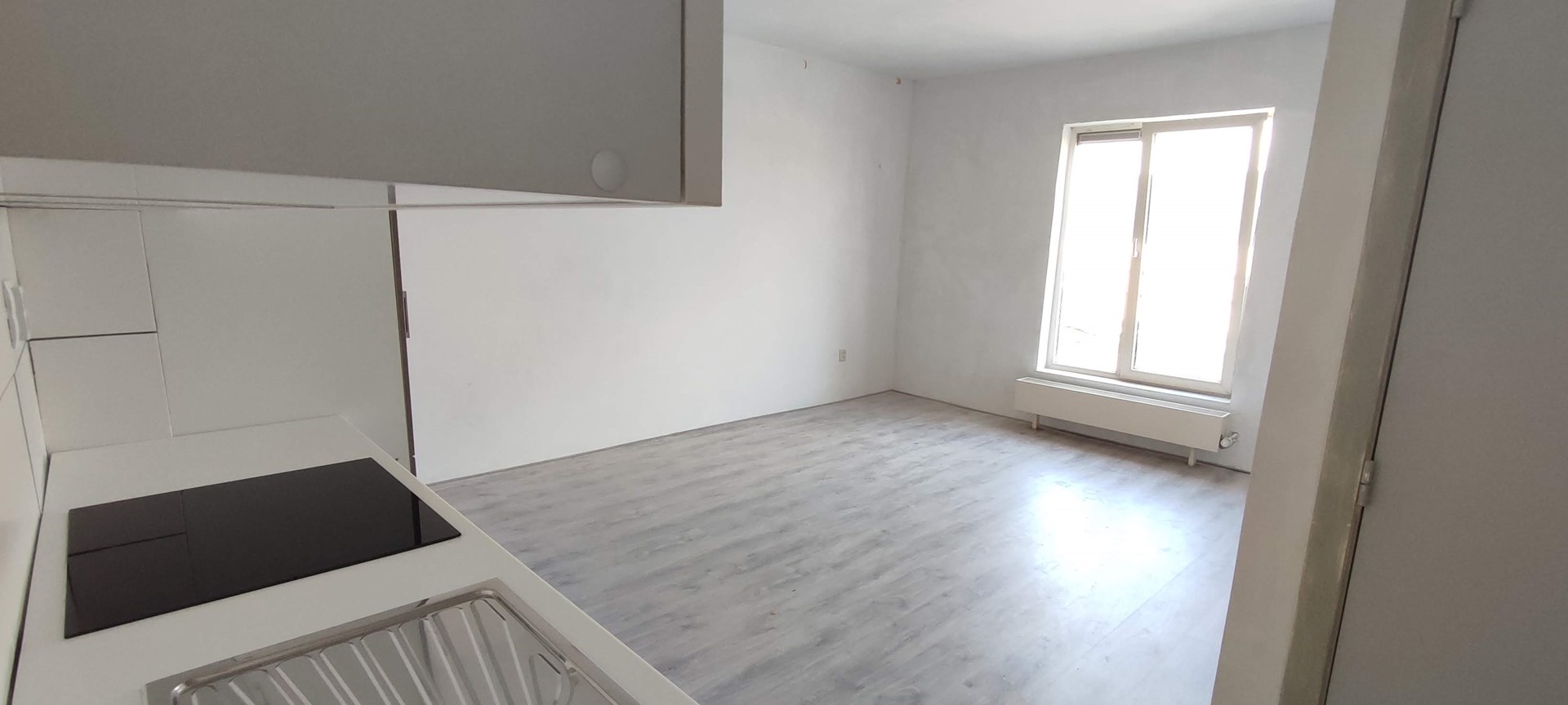Through the entrance you enter the living room with open kitchen. The kitchen is equipped with an oven, 4-burner stove, extractor hood and refrigerator. The entire house has a laminate floor. Next to the living room is the bathroom, which is equipped with a walk-in shower, toilet, sink and connection for the washing machine. The spacious bedroom of approx. 15 m2 is located at the rear. This apartment is within walking distance of various shops. Excellent accessibility by public transport.