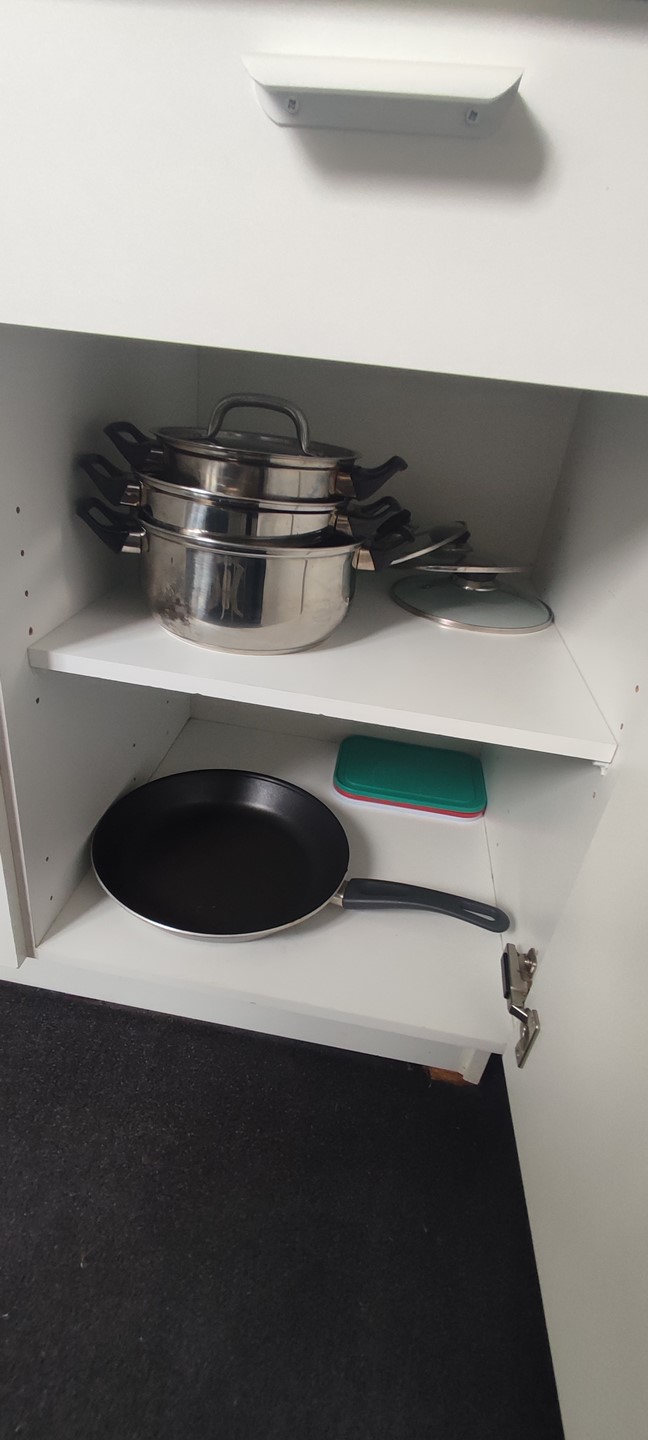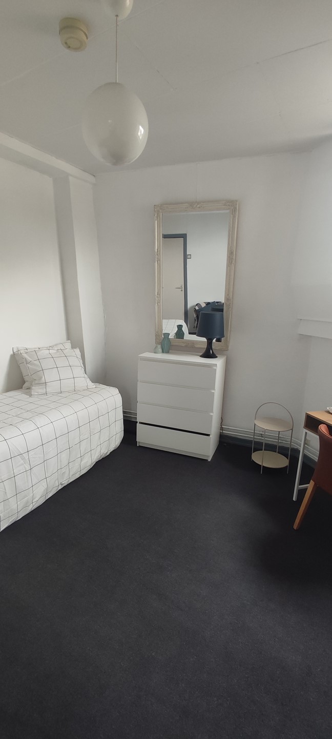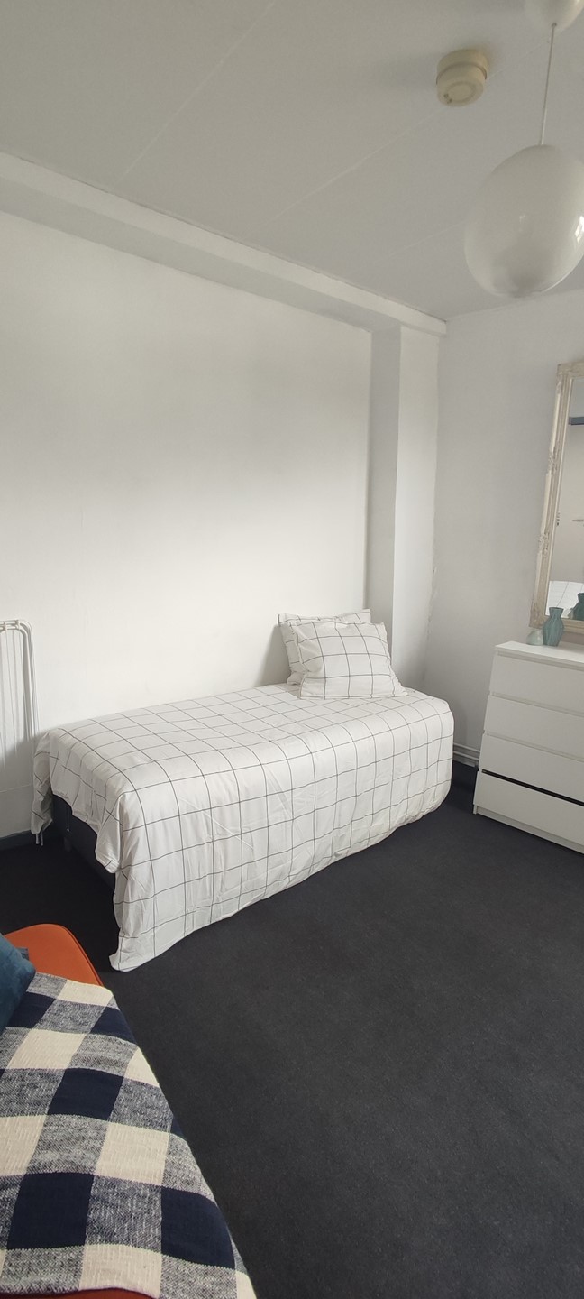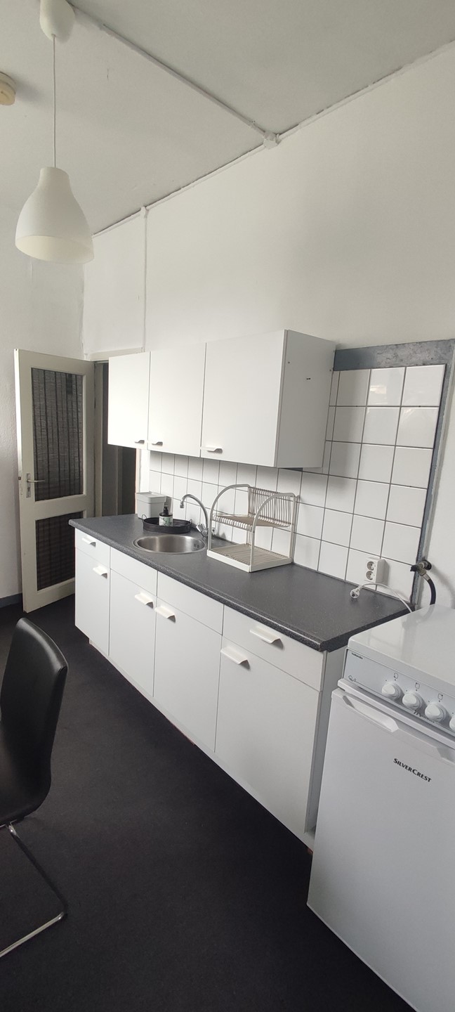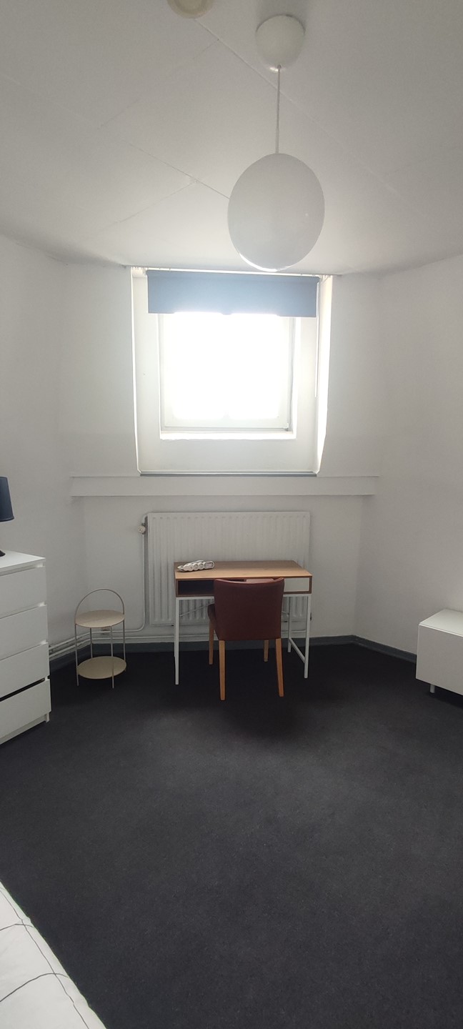 The furnished room is located on the 2nd floor of a well maintained property and the room has its own kitchenette with a 4-burner stove, extractor hood and a refrigerator. The shower and toilet are shared with 2 roommates.