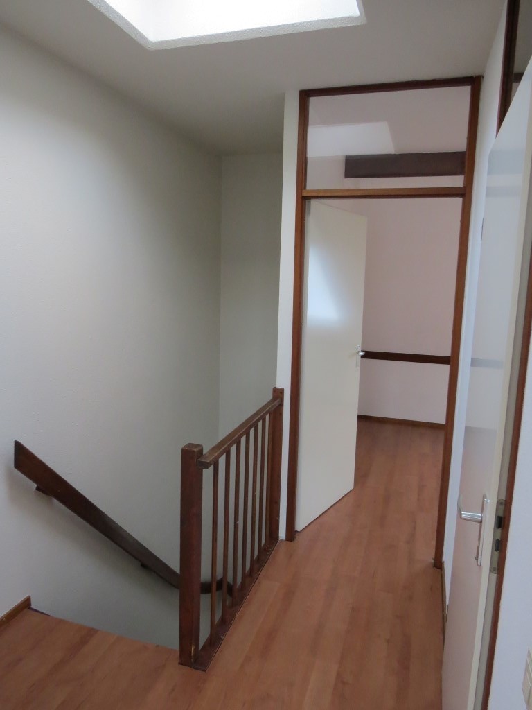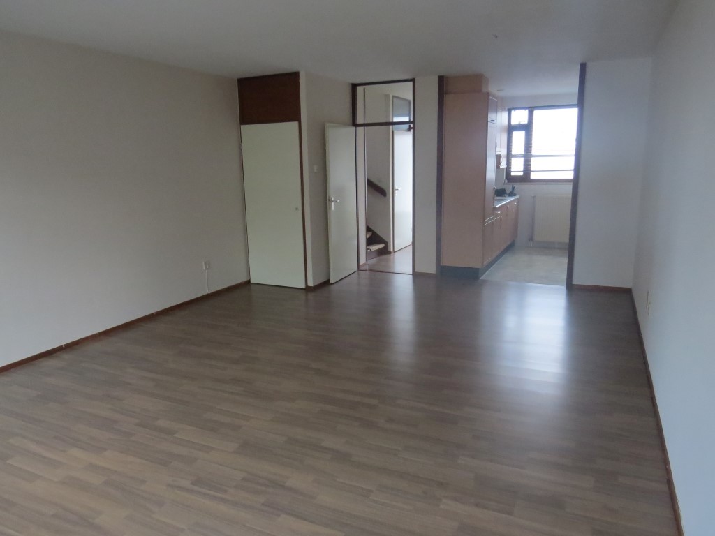 You enter the apartment through the hallway, which provides access to the toilet, the living room, and the staircase to the upper floor. The apartment features a spacious living room (approx. 30m²) with an adjacent semi-open kitchen. The apartments are equipped with a neat kitchen layout, but no additional appliances (except an extractor hood).