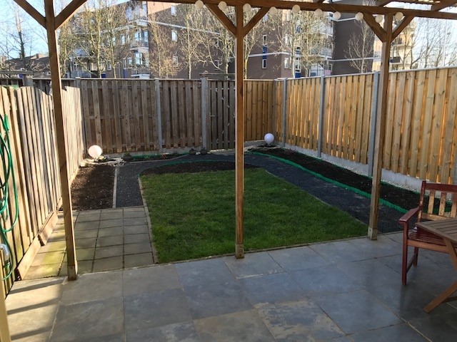 De woonkamer geniet veel lichtinval en sluit aan op de halfopen keuken v.v. een oven, 4 pits gasfornuis, afzuigkap, vaatwasser en inbouw koel-vries combinatie. Nette omsloten achtertuin met achter ingang. Op de 1ste verdieping zijn 3 slaapkamers van respectievelijk 9m2 - 12m2 -13m2 gelegen en de badkamer met ligbad / douche combinatie, 2de toilet en wastafel. Vanuit de overloop is eveneens met vaste trap de bergzolder te bereiken.