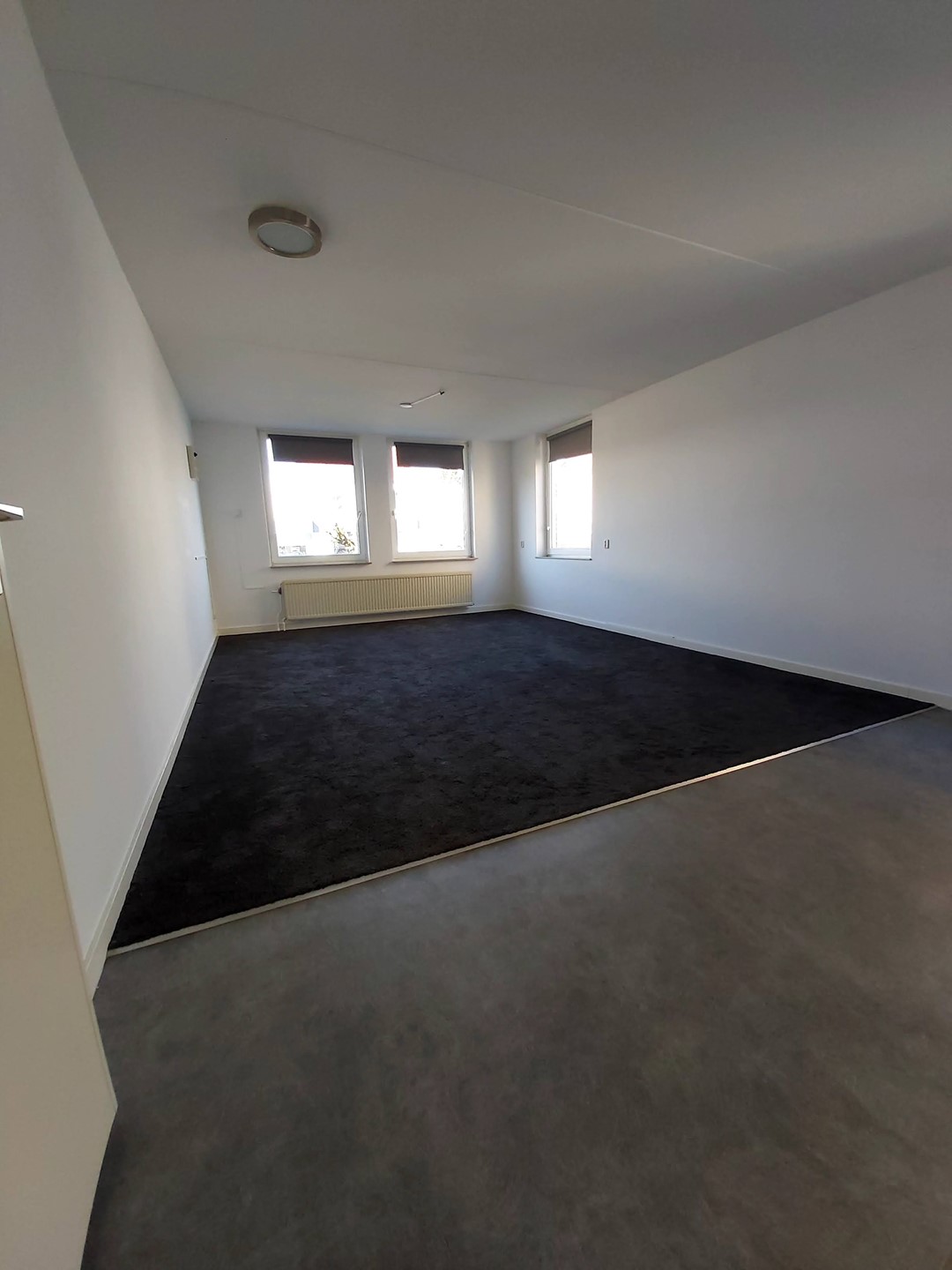 Dit woonkamer geniet door de vele ramen van veel lichtinval. De basis keukenopstelling is zonder apparatuur. De badkamer is voorzien van douche, wastafel, toilet en wasmachine aansluiting.