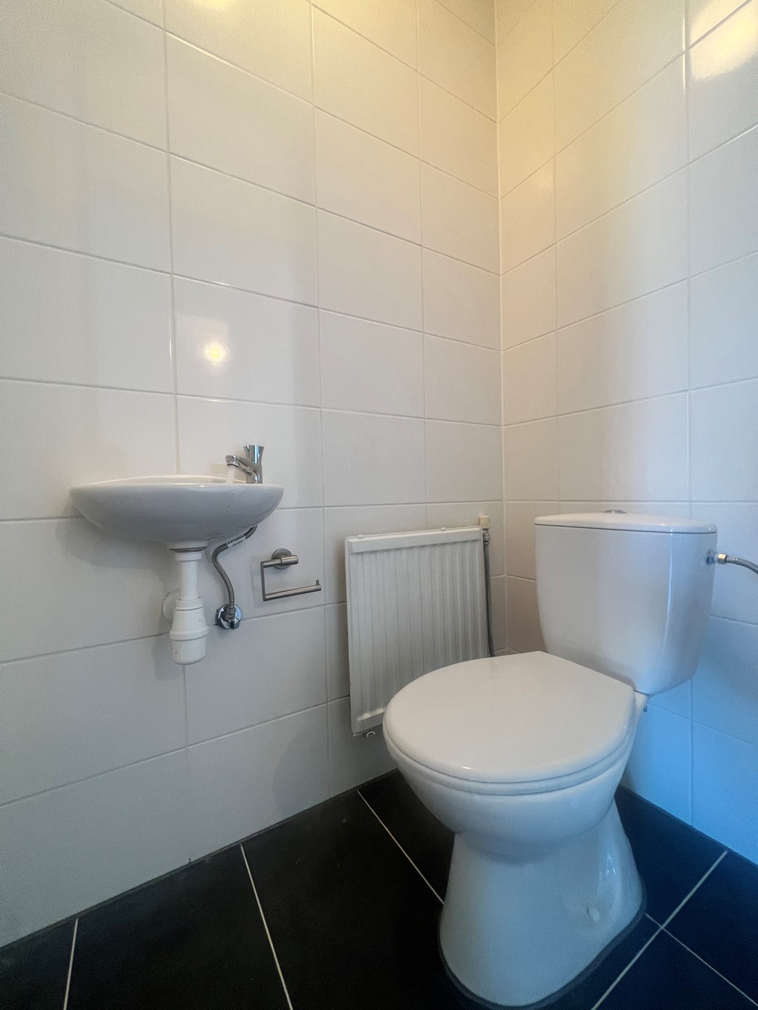 Het appartement beschikt over 1 slaapkamer van ca 10m2 en een ensuite badkamer van ca 2m2. De badkamer is voorzien van douche en wastafel en uitsluitend bereikbaar vanuit de slaapkamer. Het separate toilet is vanuit de hal bereikbaar en hier is tevens de aansluiting voor de wasmachine gesitueerd. Het appartement is voorzien van een laminaatvloer, grotendeels dubbele beglazing en rolluiken. Het nette keukenblok is voorzien van een koelkast.