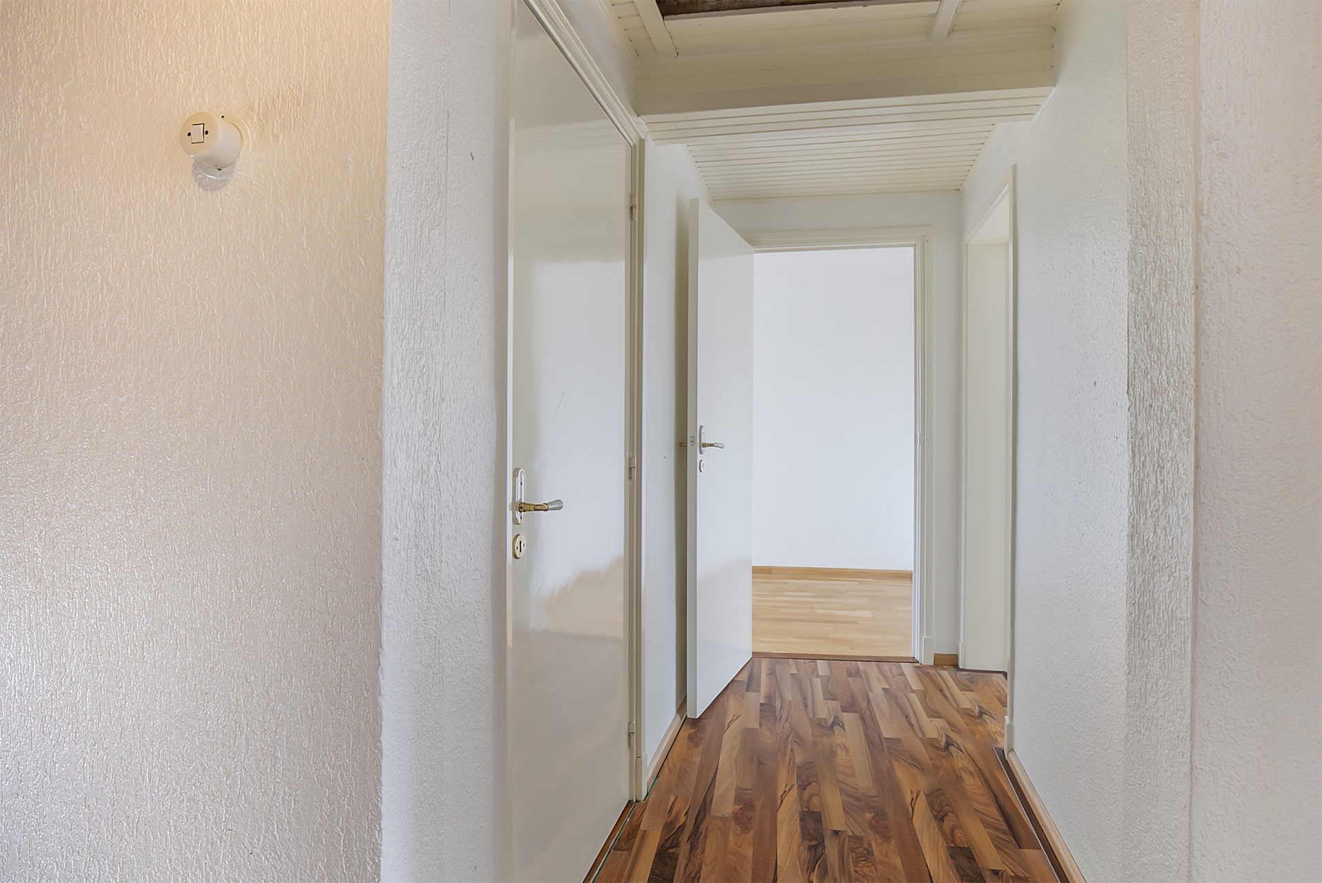 De voordeur bevindt zich aan de zijkant van het pand, gelegen aan de oprit welke eveneens toegang verleent aan de loods met parkeerplaatsen. 1 parkeerplaats is gereserveerd voor de bewoners van deze bovenwoning. In de hal/entree die is voorzien van een tegelvloer, treft u de goed verzorgde meterkast en een toiletruimte.