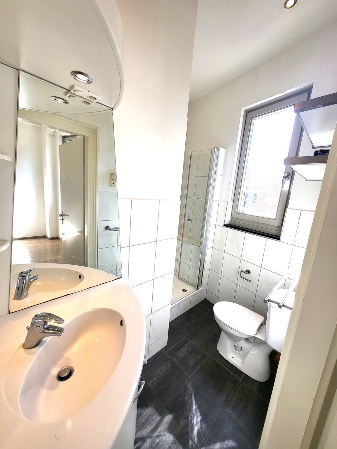 Licht 2 slaapkamer appartement (80m2) met dakterras en balkon in het stadsdeel Wyck te Maastricht. Het appartement is gelegen op de 1ste verdieping en geniet veel natuurlijke lichtinval door de grote vensters met HR + glas. De woonkamer is ruim van opzet, v.v. een parketvloer, open haard en sluit aan op de open keuken, welke is uitgerust met een vaatwasser, combi magnetron, fornuis, afzuigkap en losse koel-vriescombinatie. Tevens kunt u vanuit hier het balkon aan de voorzijde betreden. Het dakterras (20m2) is aan de achterzijde gelegen en uitsluitend bereikbaar via de grote slaapkamer (15m2). De 2de slaapkamer (10m2) is v.v. een wasmachine en biedt toegang tot de compacte badkamer met douche cabine, wastafel en toilet.