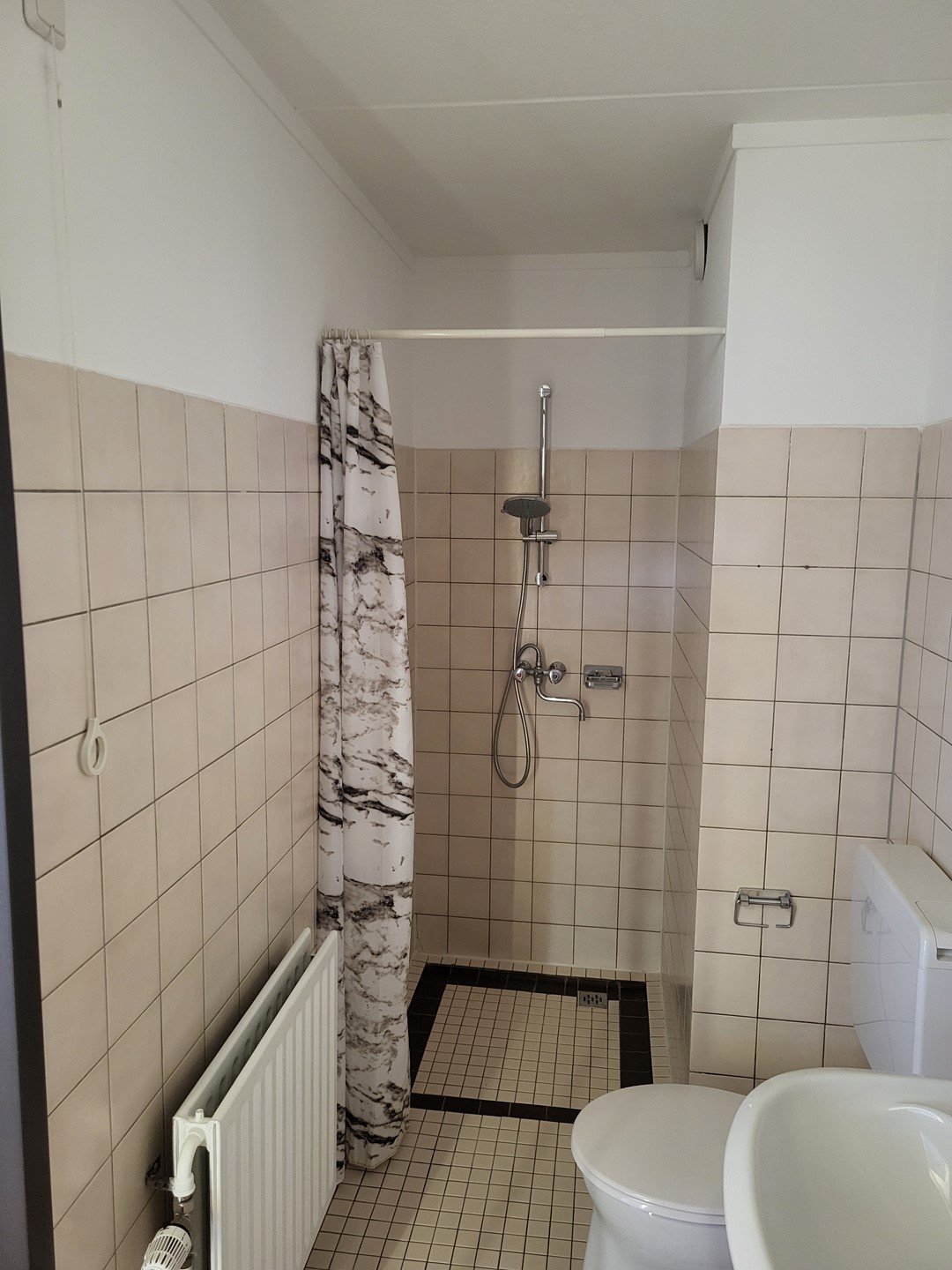 Aan de galerijzijde bevindt zich de slaapkamer met een oppervlakte van circa 12m². De badkamer is voorzien van een douche, vaste wastafel en het toilet. In een separate berging aangrenzend aan de badkamer bevindt zich de warmwatervoorziening en tevens de wasmachineaansluiting.