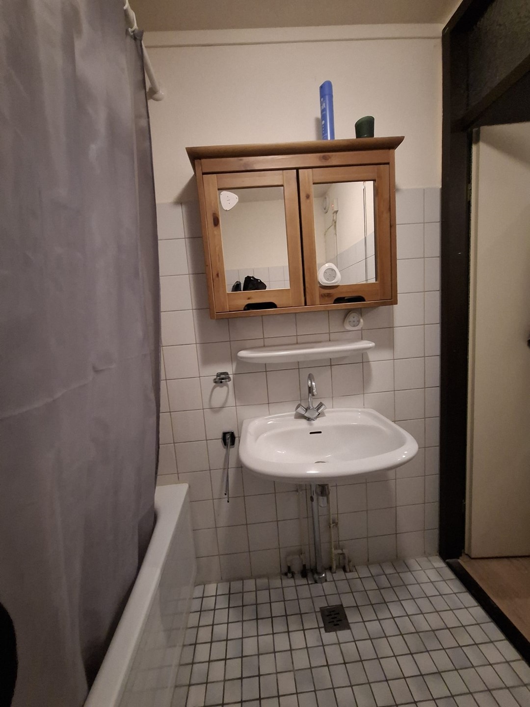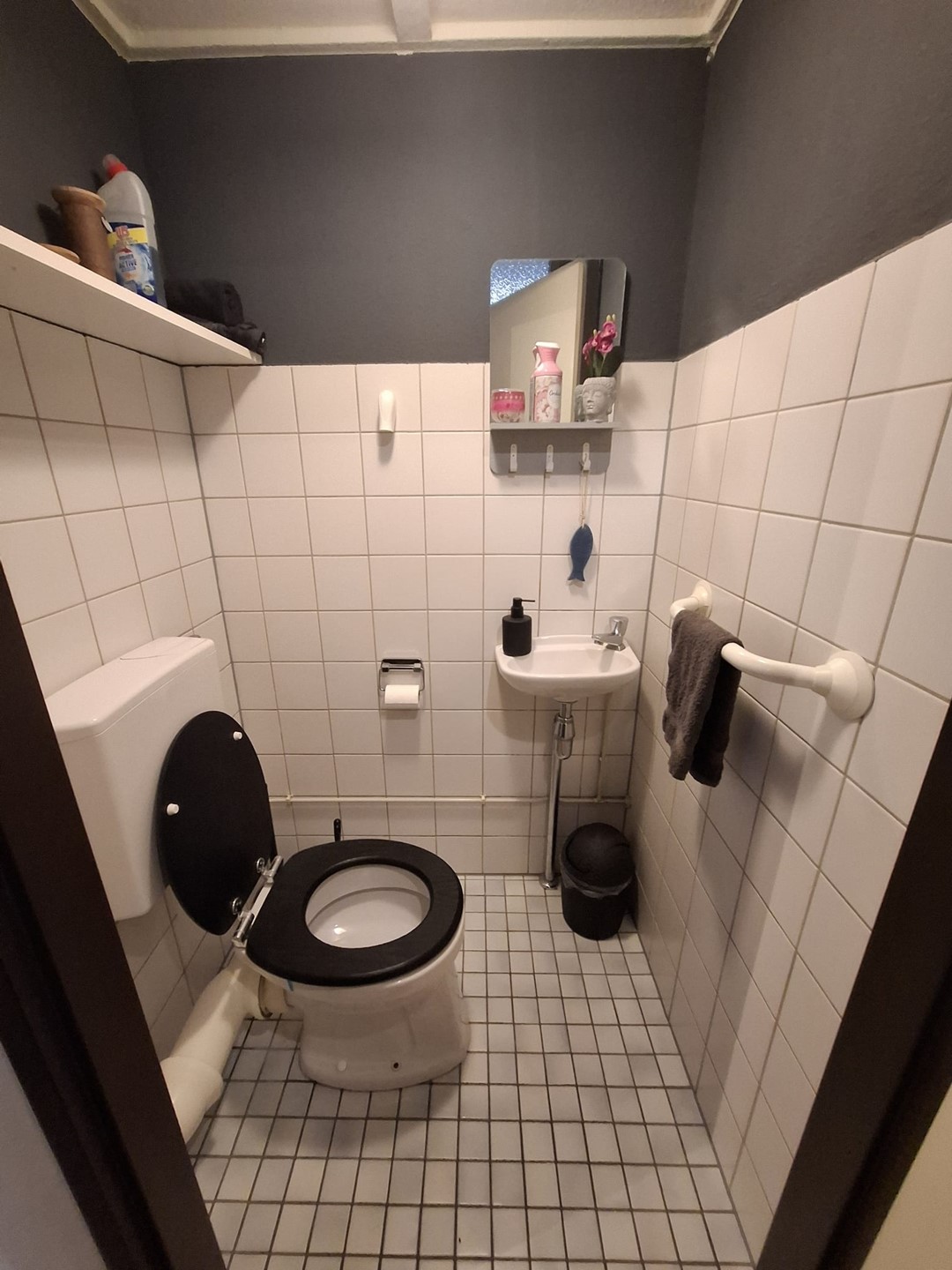 Vanuit de tweede hal bereikbaar vanuit de woonkamer heb je verder nog toegang tot de badkamer met bad en wastafel, separaat toilet, berging met wasmachine aansluiting en de ruime slaapkamer van ca 13 m2.