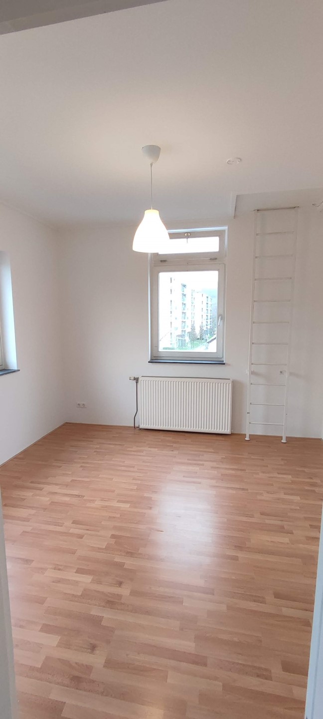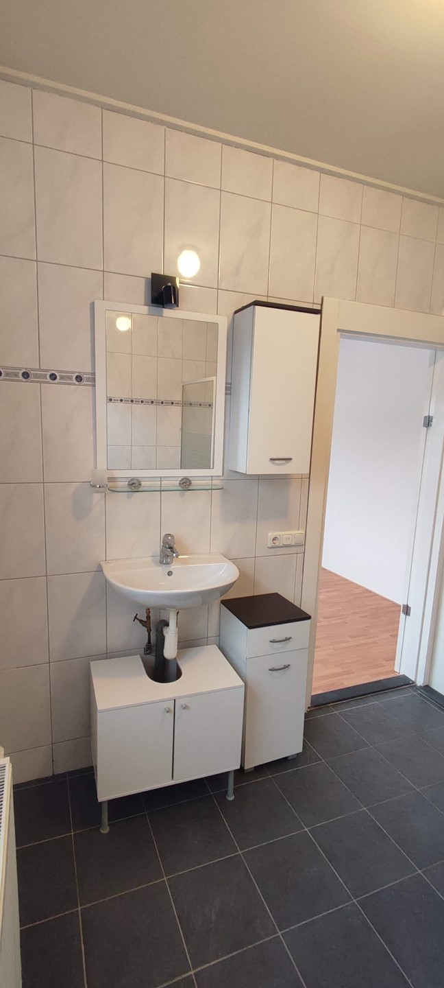 Het nette appartement bevindt zich op de tweede verdieping en beschikt over een lichte woonkamer met open keuken (ca. 30 m²) dankzij de royale raampartijen. De keuken is uitgerust met een kookplaat en afzuigkap.