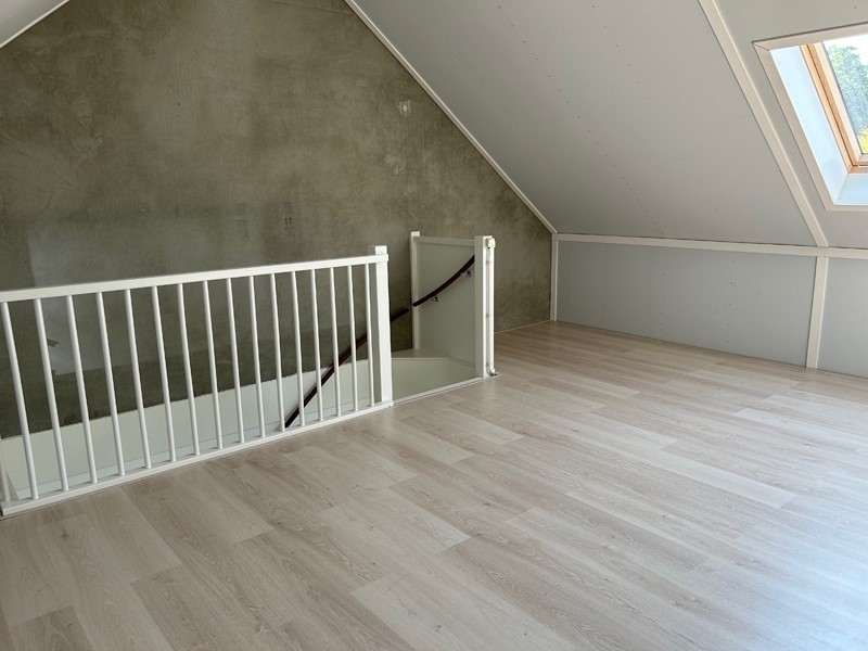 Via de vaste trap is de ruime zolder van 24m2 te bereiken. Hier bevinden zich de installaties van de woning. Tevens is hier de aansluiting voor een wasmachine.