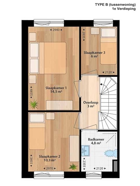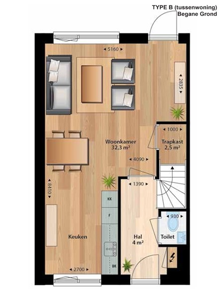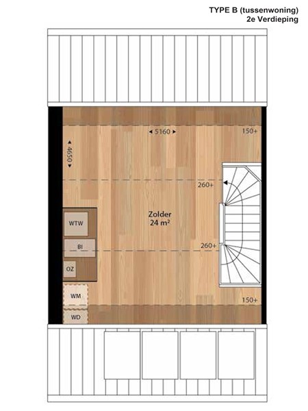 Indeling Type B (tussenwoning):